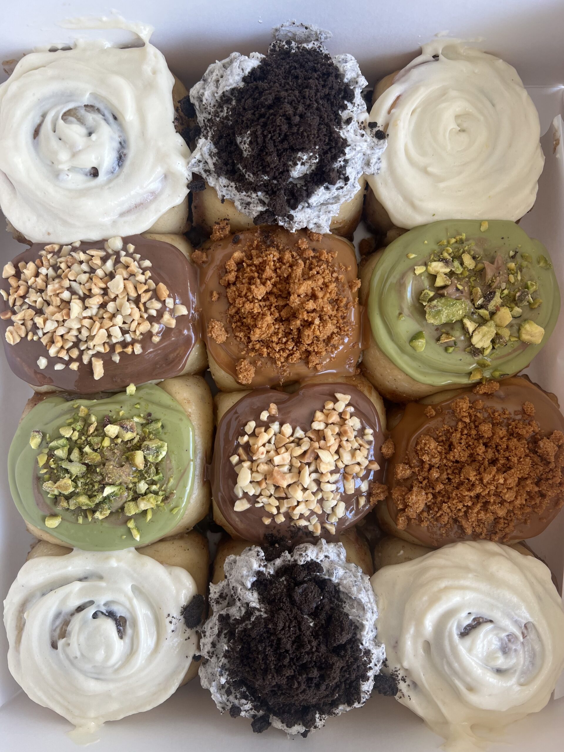 This dozen of delicious mini cinnamon rolls is perfect for sharing (or keeping all to yourself). It’s a fun and easy way to try a selection of our most popular flavours and truly satisfy everyone’s craving. Pick your 12 favourite flavours from the list below!